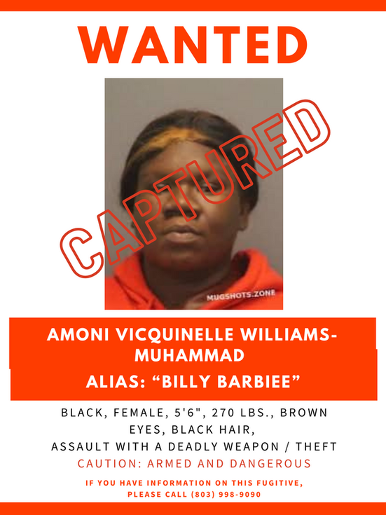 Note: Do not attempt to apprehend Amoni Williams yourself, as she is considered armed and dangerous. Leave the apprehension to trained law enforcement personnel.